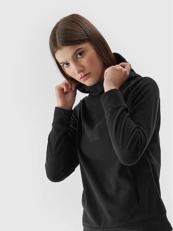 4F Fleecová mikina 4FAW23TFLEF148 Čierna Regular Fit